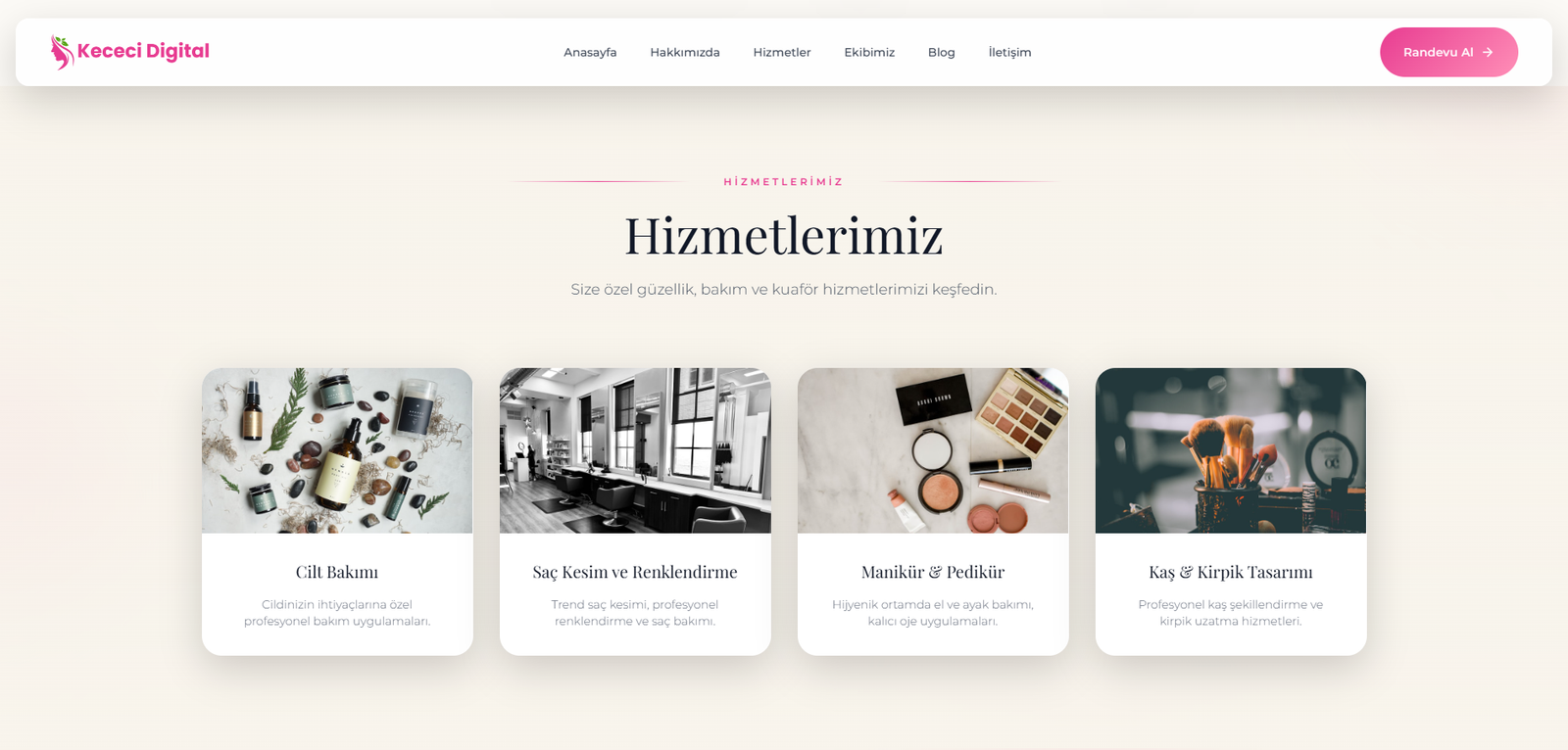 • Hizmet ve Kategori Yönetimi: Hizmetlerinizi kategorilere ayırın, süre ve fiyat bilgilerini tanımlayın.