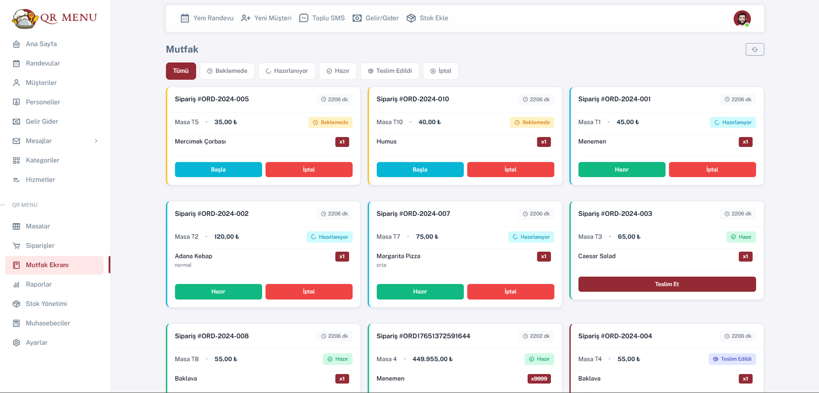 • Operasyonel Verimlilik: Mutfak ekranı ile sipariş takibi kolaylaşır