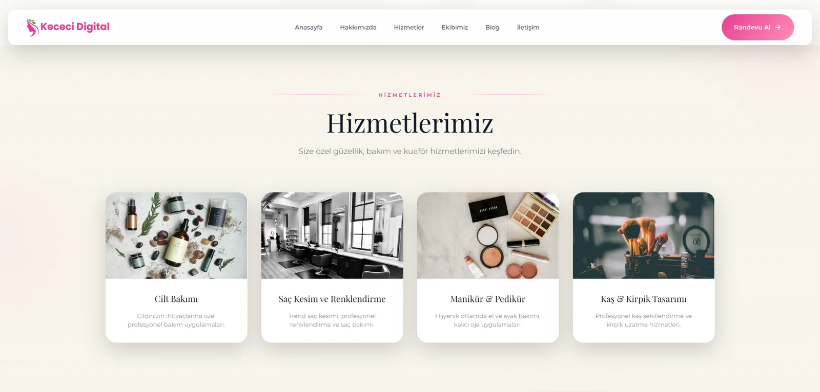 • Hizmetler bölümü – dinamik hizmet listesi